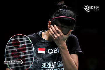 Ekspresi kekecewaan Greysia Polii (PB Berkat Abadi).