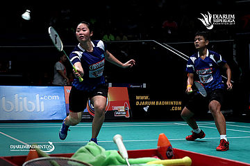 Meirisa Cindy/Ni Ketut Mahadewi (Tjakrindo Masters) menyambut pengembalian.