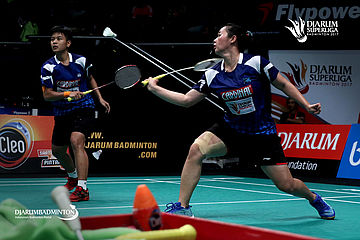 Meirisa Cindy/Ni Ketut Mahadewi (Tjakrindo Masters) bersiap menghadang serangan.