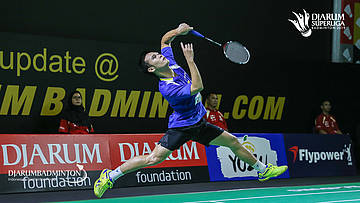 Tien Minh NGUYEN (JAYA RAYA JAKARTA) mengembalikan shuttlecoc