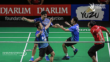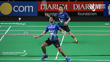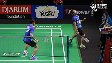 Akbar Bintang CAHYONO+Berry ANGRIAWAN (DJARUM KUDUS) berusaha mengembalikan serangan