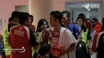 Anthony Sinisuka GINTING (MUSICA TRINITY) dan Ihsan Maulana MUSTOFA (DJARUM KUDUS) seusai bertanding