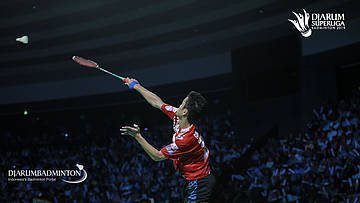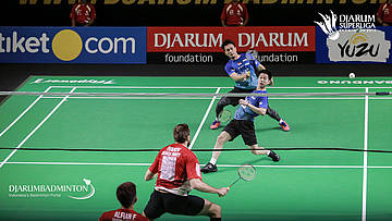 Kevin Sanjaya SUKAMULJO+Mohammad AHSAN (DJARUM KUDUS) gagal mengembalikan shuttlecock