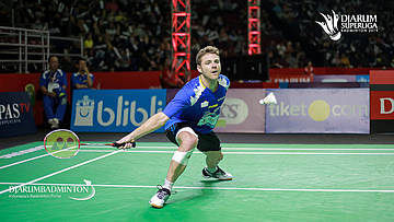 Anthony Sinisuka GINTING (MUSICA TRINITY) bersiap melepaskan serangan