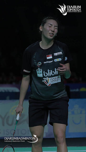 Ekspresi Michelle li (Djarum Kudus) Gagal mendapatkan poin
