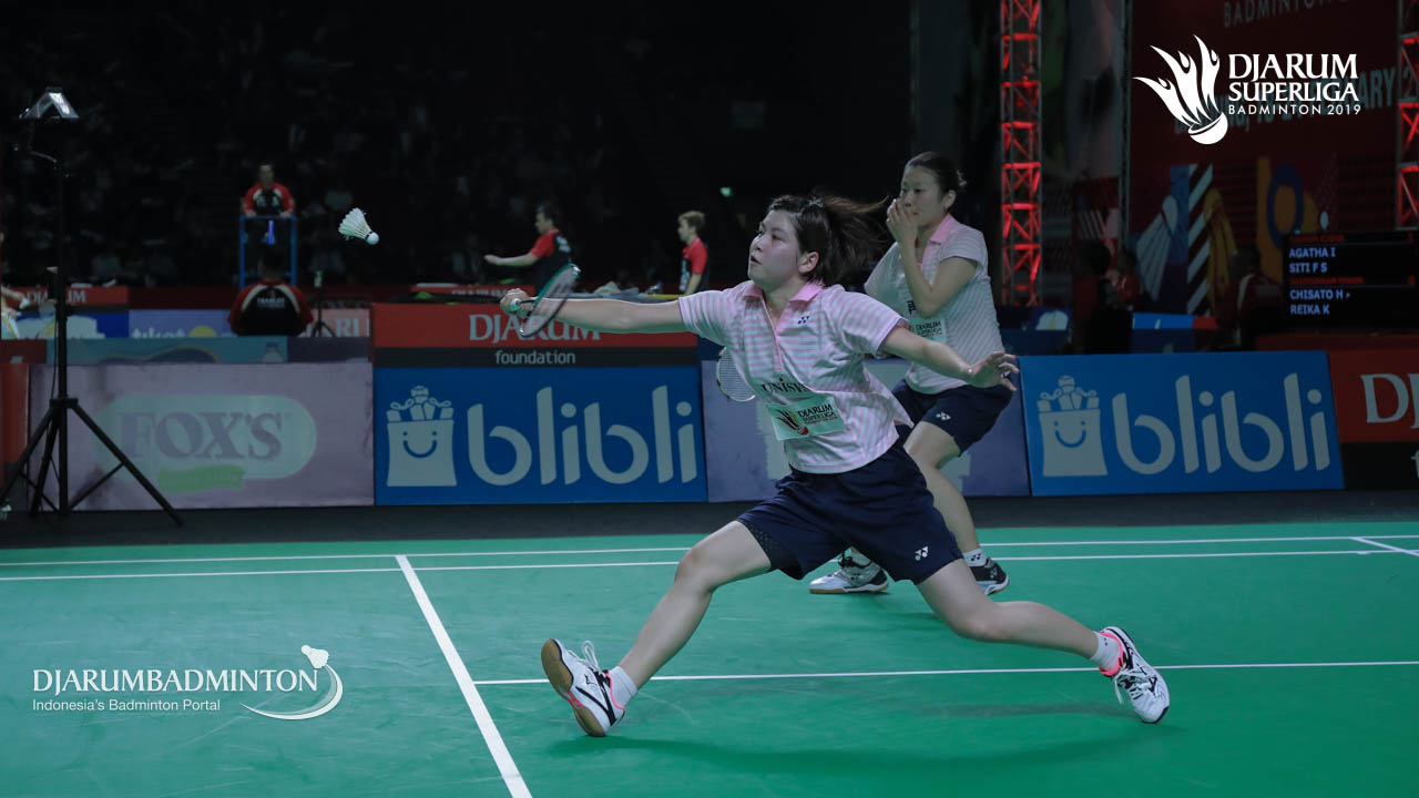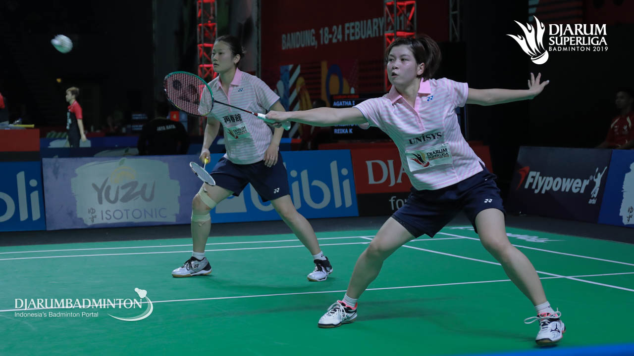 Chisato Hoshi/Reika Kakiiwa (Saishunkan Nihon Unisys) menahan serangan