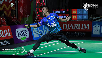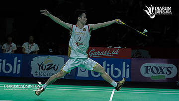 Ihsan Maulana Mustofa (Djarum Kudus) Menggapai Shuttlecock