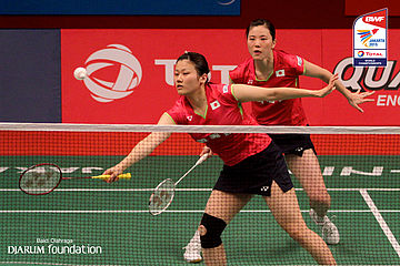 Shizuka Matsuo/Mami Naito (JPN) menahan serangan lawan