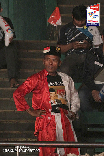 Salah satu suporter Indonesia dalam gelaran Total World Championship 2015
