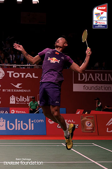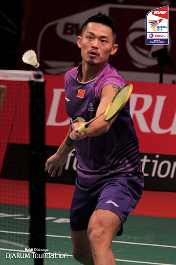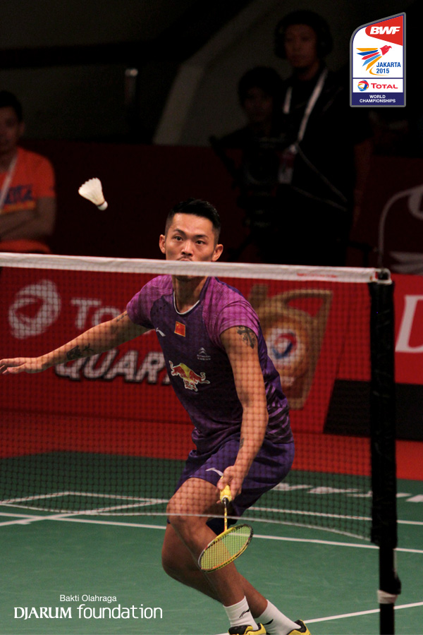 Lin Dan (CHN) mengembalikan shuttlecock arah lawan
