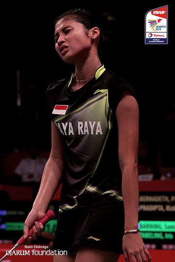 Ekspresi Rizki Amelia (INA) saat kehilangan poin
