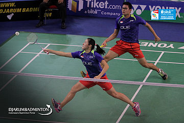 Keng Yin Royston Loh/Wong Jia Ying Crystal (Singapore) Berusaha Menggapai Shuttlecock