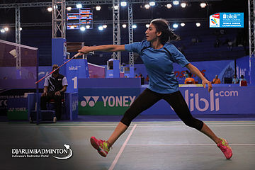 Jana Ashra (Egypt) Berusaha Menggapai Shuttlecock