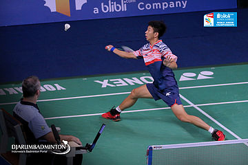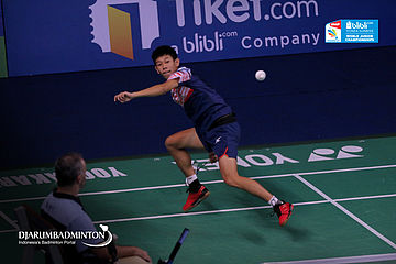 Zhengze Gao Berusahan Menjangkau Shuttlecock
