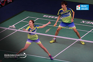 Fan Qiuyue/Li Wenmei (China) Mengembalikan Shuttlecock
