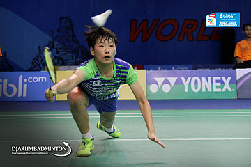 Se Young An (Korea) Berusaha Menggapai Shuttlecock