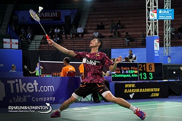 Gatjra Piliang Fiqihilahi (Indonesia) Mengembalikan Shuttlecock
