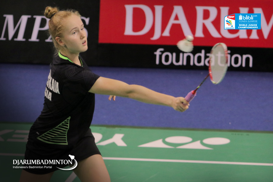 Anastasiia Shapovalova/Anastasiia Semenova (Rusia) Mencoba Mengembalikan Shuttlecock