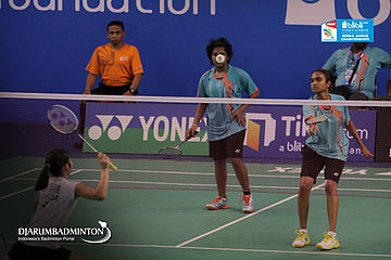 Jauza Fadhila Sugiarto/Ribka Sugiarto (Indonesia) Melakukan Smash