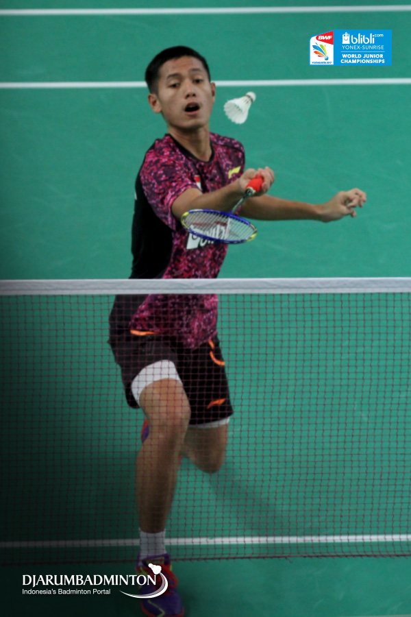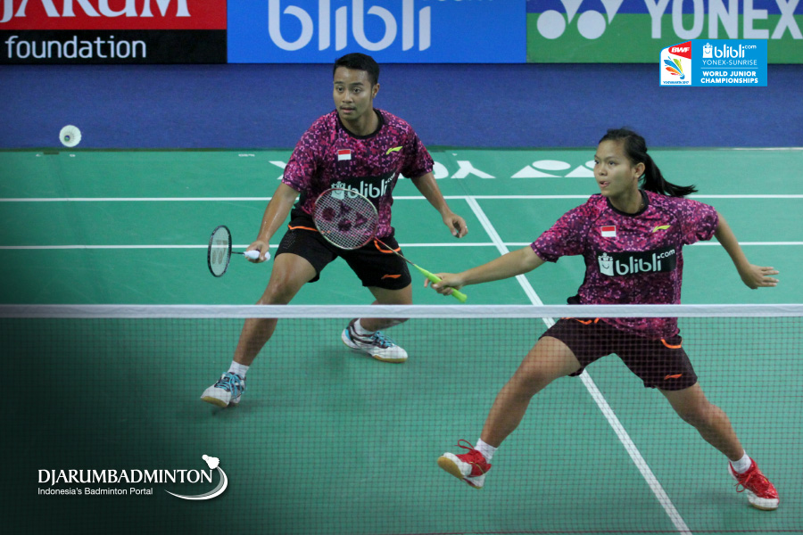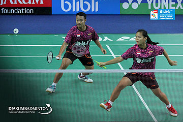 Rehan Naufal K/Siti Fadia S (Indonesia) Mengembalikan Shuttlecock