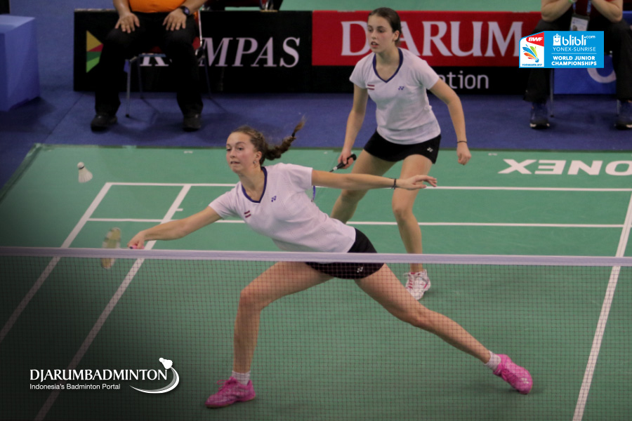 Una Berga/Liana Lencevica (Latvia) Mengembalikan Shuttlecock