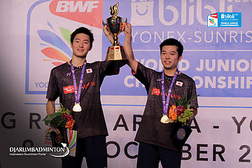 Mahiro Kaneko/Yunosuke Kubota (Jepang) di Podium Ganda Putra World Junior Championships 2017
