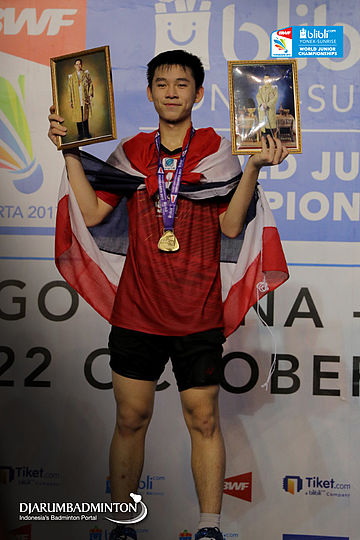 Kunlavut Vitidsarn (Thailand) Berfoto di Podium Tunggal Putra