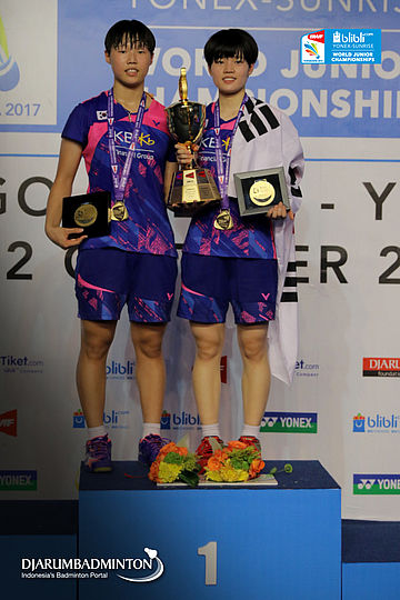 Ha Na Baek/Yu Rim Lee (Korea) Berfoto di Podium Ganda Putri