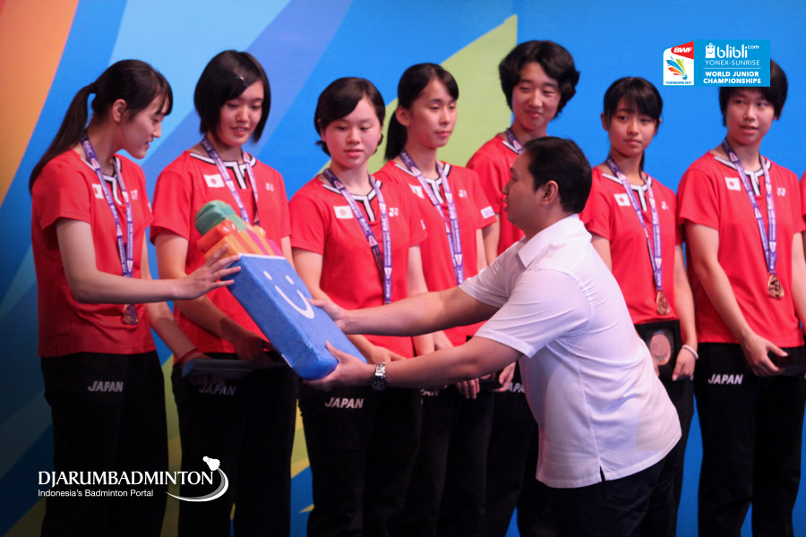 Budi Tjahjono, Event Manager Blibli.Com Memberikan Cendera Mata Kepada Tim Jepang