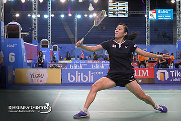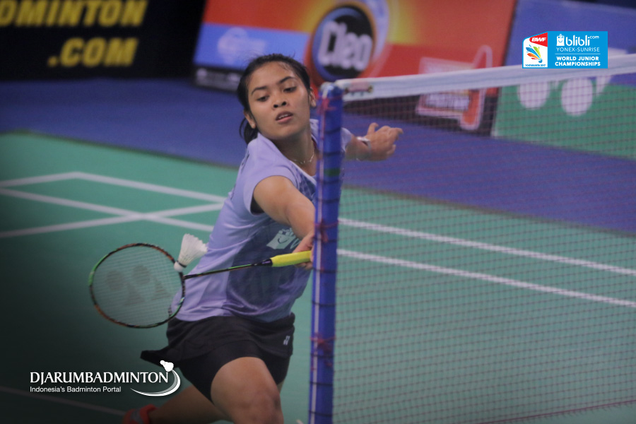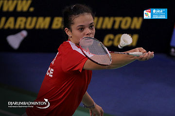 Gregoria Mariska T (Indonesia)Mengembalikan Shuttlecock Kearah Lawan