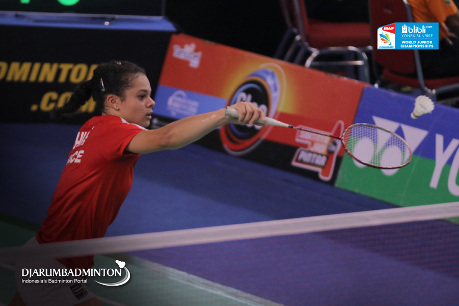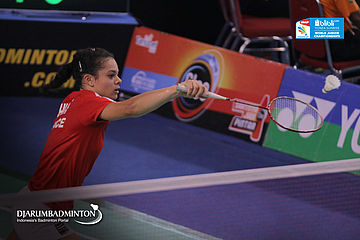 Leonice Huet (France) Mengembalikan Shuttlecock Kearah Lawan