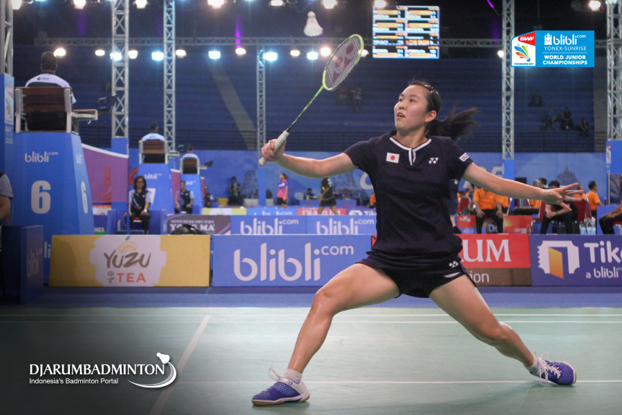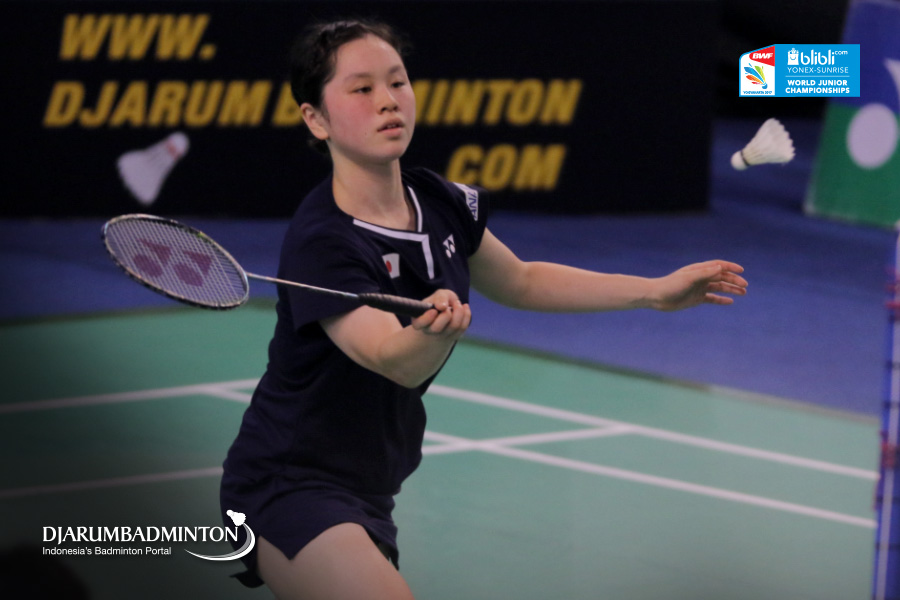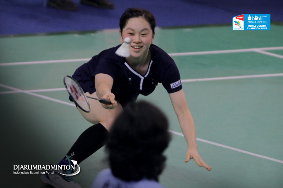 Hirari Mizui (Japan) Mengembalikan Shuttlecock Kearah Lawan