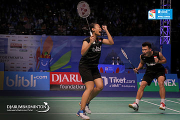 Rinov Rivaldy/Pitha Haningtyas Mentari (Indonesia) Menyambut Pengembalian