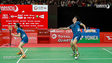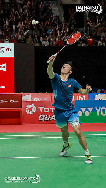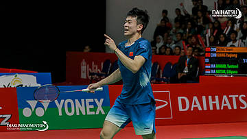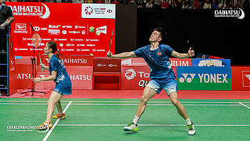 ZHENG Siwei (Tiongkok) berisap mengembalikan shuttlecock