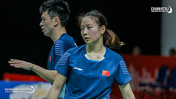 ZHENG Siwei/HUANG Yaqiong (Tiongkok) mengembalikan serangan