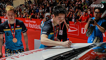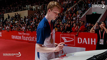 Anders Antonsen (Denmark) menandatangani mobil daihatsu