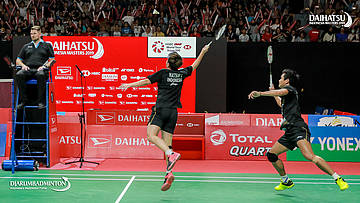 Marcus Fernaldi GIDEON/Kevin Sanjaya SUKAMULJO (Indonesia) menandatangani mobil daihatsu