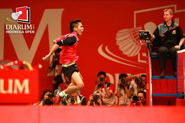 Kejutan! Perjuangan Kenichi Tago kandas di Djarum Indonesia Open Super Series Premier (DIOSSP) 2013. Dialah Alamsyah Yunus yang mengalahkan Tago dengan skor akhir 24-22, 16-21, 21-17.
