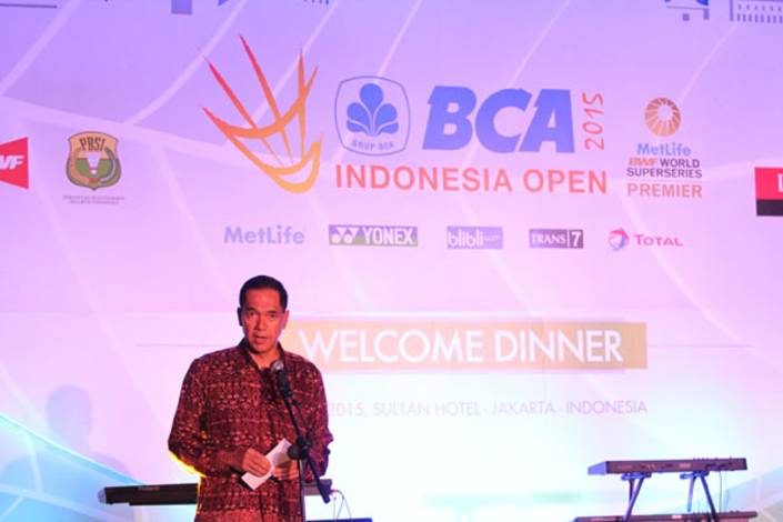 Welcome Dinner yang berlangsung meriah, dihadiri pula oleh Ketua Umum PP PBSI Gita Wirjawan, Direktur BCA Suwignyo Budiman, Deputi Peningkatan Pembinaan dan Prestasi Kemenpora Joko Pekik, Sekretaris Jenderal BWF Thomas Lund, mantan Ketum PP PBSI Djoko Santoso serta Yan Haryadi dari Djarum Foundation.