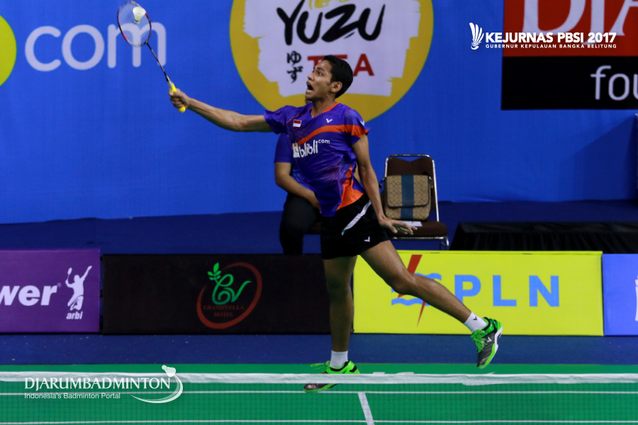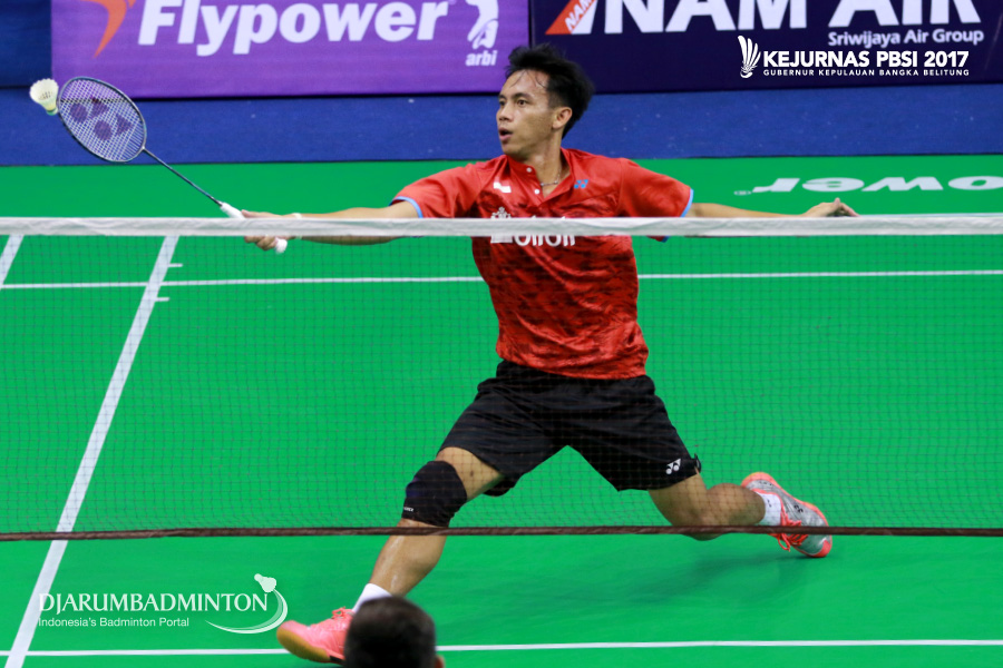 Leo Rollycarnando/Pramudya Kusumawardana (Jawa Tengah) Menyambar Pengembalian Lawan