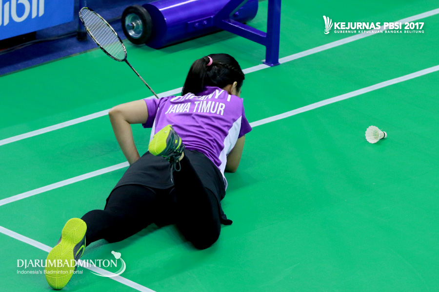 Titifany Ilahi (Jawa Timur) Terjatuh Saat Berusaha Menggapai Shuttlecock
