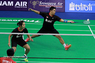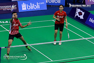 Yantoni Edy Saputra/Marsheilla Gischa Islami (Jawa Tengah) Mengembalikan Serangan Lawan