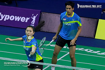 Yeremia Erich Yotje Yacob R/Angelica Wiratama (DKI Jakarta) Mengembalikan Shuttlecock