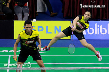 Yantoni Edy Saputra/Marsheilla Gischa Islami (Jawa Tengah) Berusaha Mengembalikan Shuttlecock