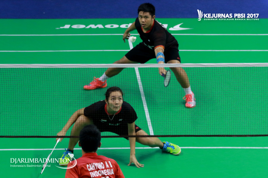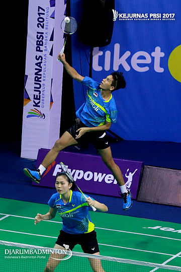 Andika Ramadiansyah/Mychelle Christine Bandaso (Jawa Tengah) Berusaha Menyambar Shuttlecock