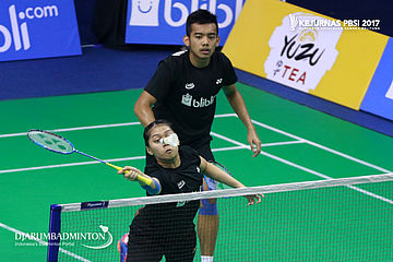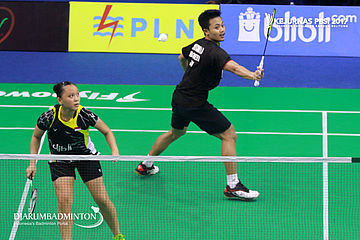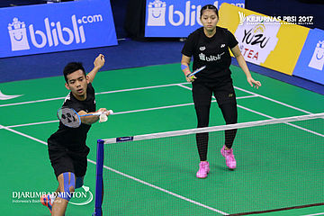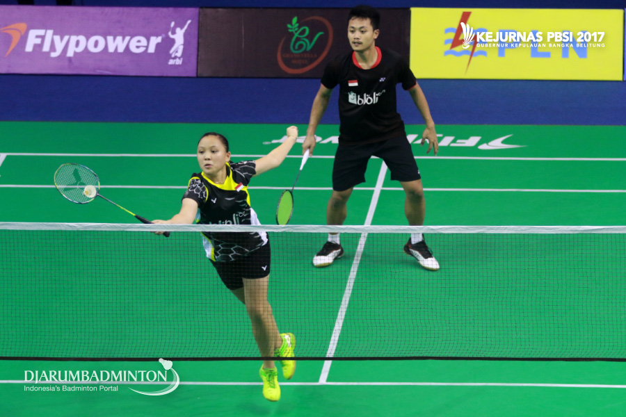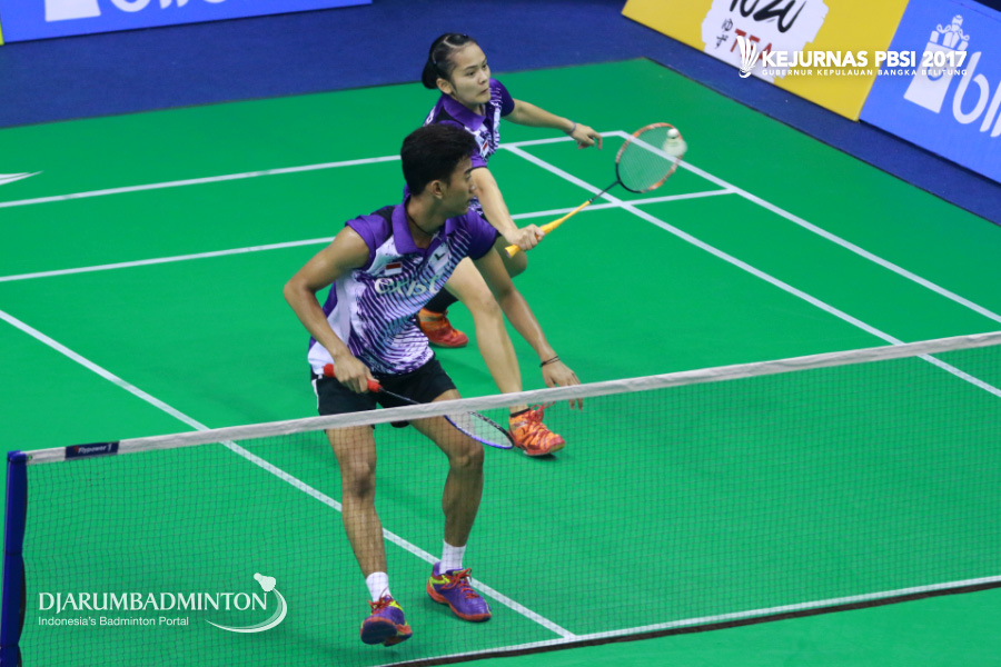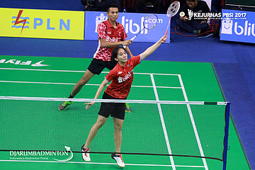 Akbar Bintang Cahyono/Winny Oktavina Kandow (Jawa Tengah/DKI Jakarta) Mengembalikan Shuttlecock