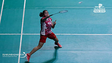 Olivia Chelin Maria Kambey (DKI Jakarta) mengembalikan shuttlecock