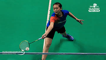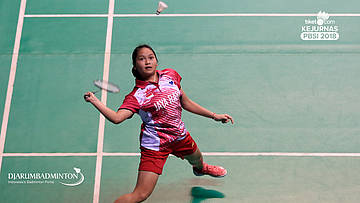 Olivia Chelin Maria Kambey (DKI Jakarta) Berusaha menggapai shuttlecock