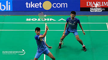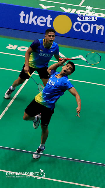 Frengky Wijaya Putra+Sabar Karyaman Gutama (Exist Jakarta) Mengembalikan shuttlecock