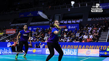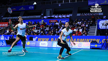 Liliyana Natsir+Praveen Jordan ( Djarum Kudus) Mengembalikan shuttlecock